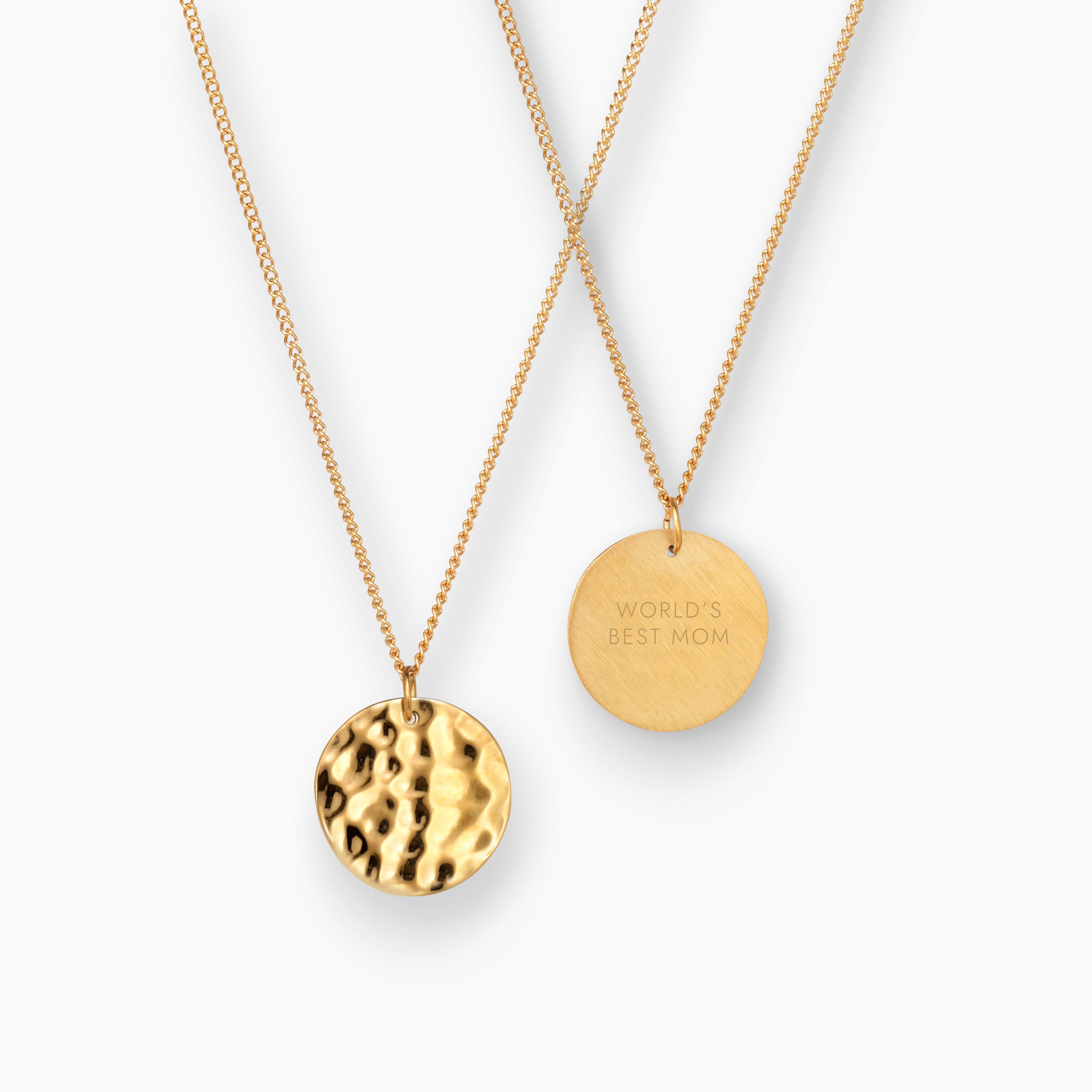 Hammered necklace in scandinavian, stylish design with the engraving "WORLD'S BEST MOM". Beautiful and stylish necklace with oval pendant in hammered finish.