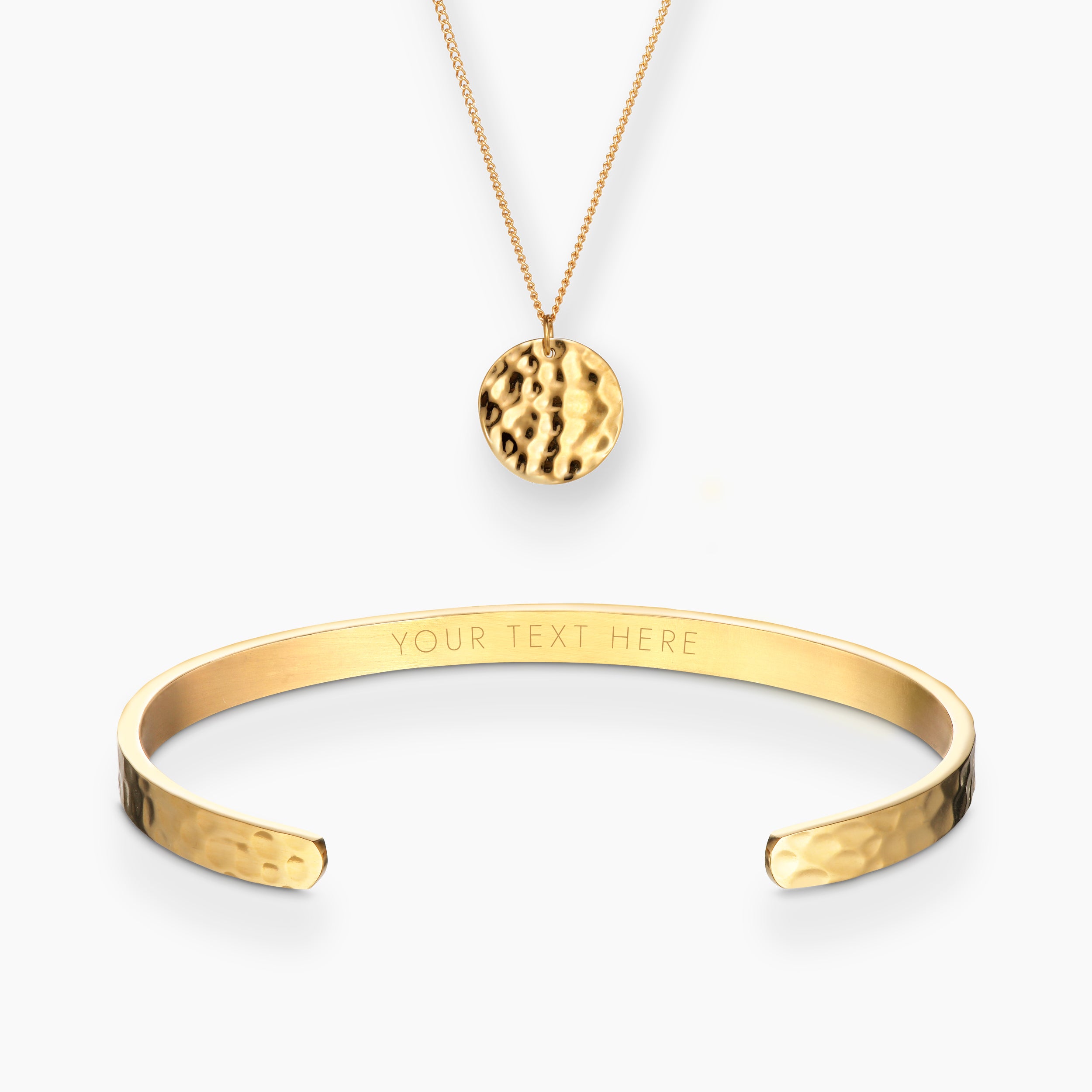 Personalized hammered necklace and bracelet with engraving in our popular oval hammered version.